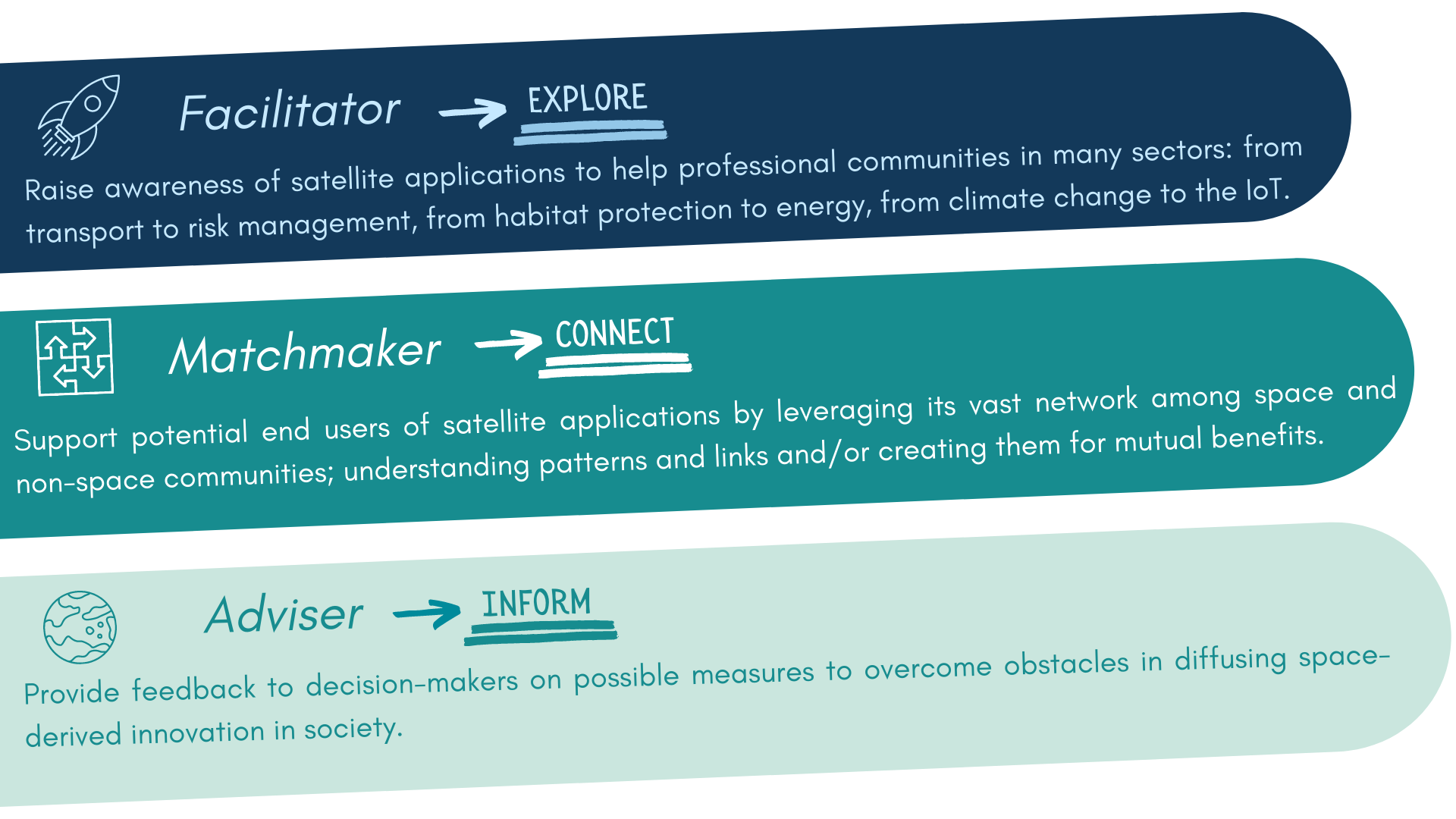 - Boost the development of your downstream space strategy and programmes;