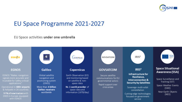 The EU Space Programme Activities. Image taken from presentation of Rodrigo da Costa, Executive Director of EUSPA.