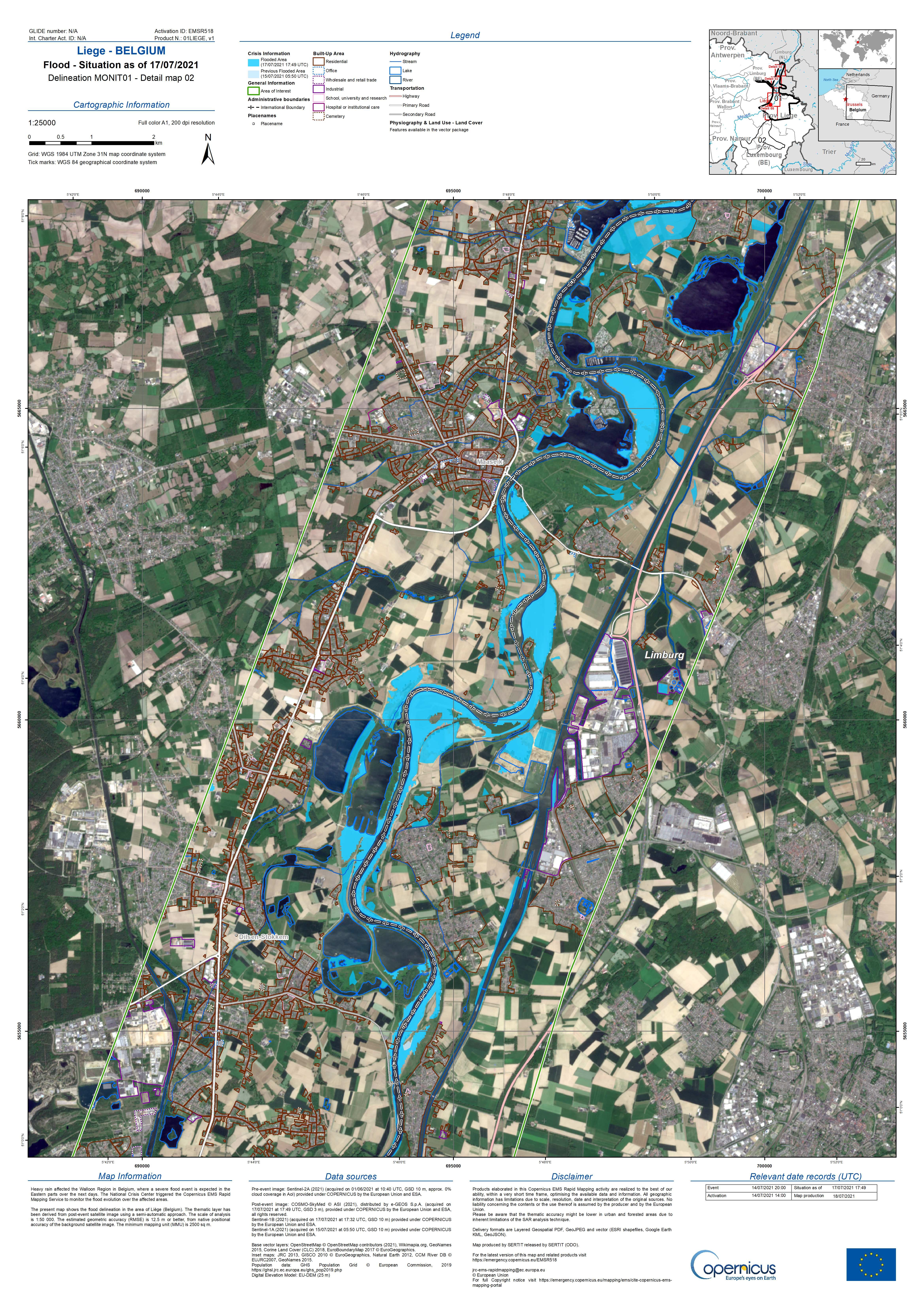Delineation map produced by CEMS during flooding in Liege, Belgium on 17 July 2021. Image taken from CEMS.