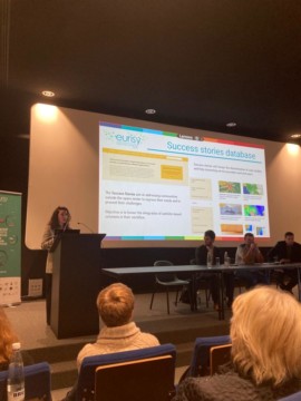 Annalisa Donati, Eurisy Secretary General, showcasing Eurisy’s success stories database.