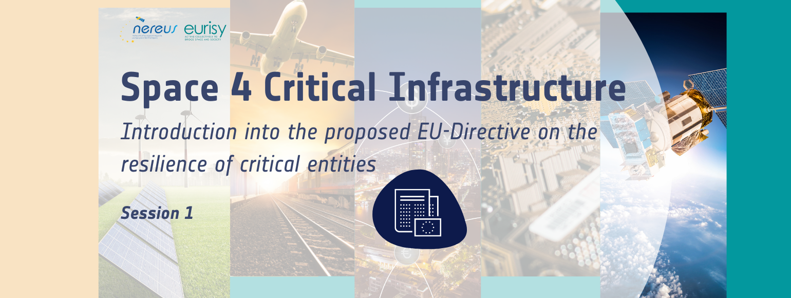NEREUS together with Eurisy launched their new webinar series “Space for Critical Infrastructure”. The series has been created in the wake of the European Commission’s proposal of a new directive on the resilience of critical entities. This opening webinar provided an overview of the new scope of the directive, its perimeter as well as its major consequences and the potential of Earth observation data to increase the effectiveness of monitoring and maintenance operations.