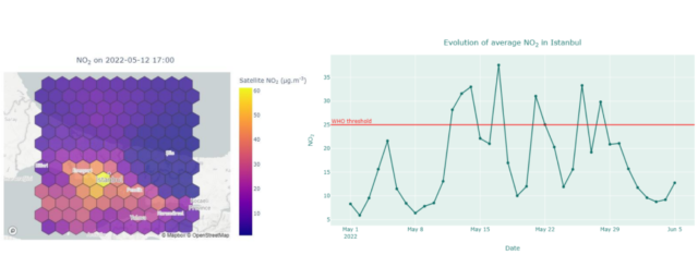 Camille Laine, Data Engineer from Murmuration, a French SME using satellite data to create environmental indicators, presented their project on super-resolution air quality monitoring service by obtaining both coverage and high resolution. Murmuration’s e-shape solution is focused on air quality measurements and predictions delivered through a user-friendly dashboard for decision-makers illustrating the evolution of air quality and moving it from the city level as provided today by satellite observations to the neighbourhood level.