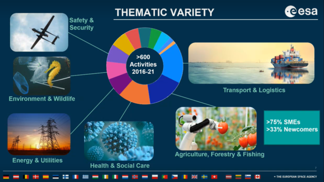 Between 2016 and 2021, the European Space Agency has been supporting more than 600 activities aimed at transferring space technologies to a number of civilian sectors, the most prominent being: Transport and Logistics, Agriculture, Forestry and Fishing, and Health and Social Care. Most of such activities have been implemented in cooperation with SMEs, while 33% of the private companies involved were “newcomers” in the ESA ecosystem.