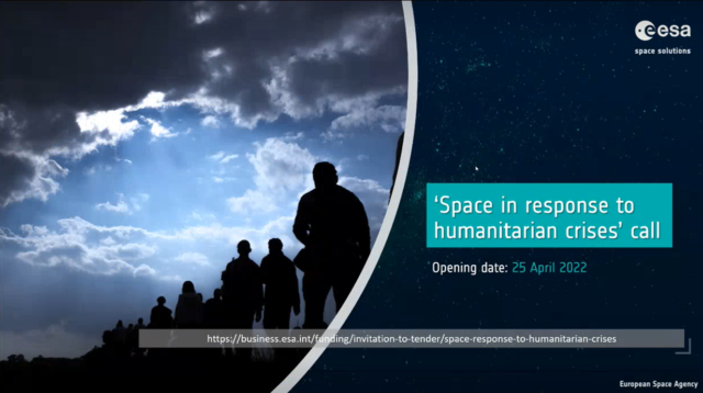 An initiative that has not been issued yet is the “Space in response to humanitarian crises” call. An info session to present the call will be organised online on the 21st of April 2022, while the call will open to applications on the 25th. Further information can be accessed here: https://business.esa.int/funding/invitation-to-tender/space-response-to-humanitarian-crises
