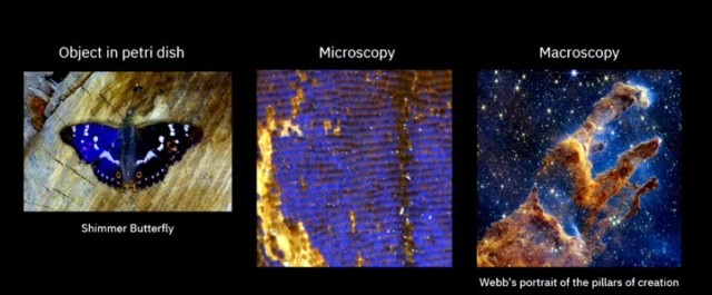 The project showcases microscopic imagery of common objects and create an aesthetics path, juxtaposing macro images of the Cosmos from ESA satellites and telescopes. The similarities are designed to explicit universal interconnections.