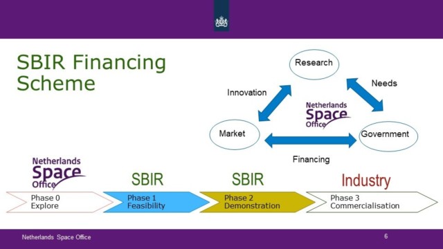The Dutch ecosystem includes numerous private companies. The Small Business Innovation Research (SBIR) financing scheme is conceived to support the government to identify their information needs that could be filled with satellite data and to stimulate innovation in small businesses.