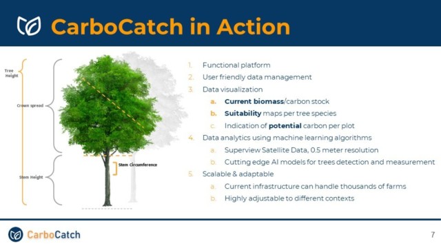 CarboCatch aims at facilitating the carbon credit market among farmers and industry, while supporting the government to plan future developments in agroforestry.