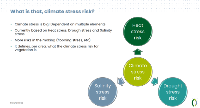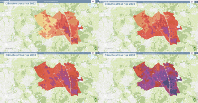 The results are maps of the climate stress risk of the vegetation in a city that can help civil servants to identify the best areas to plant additional trees, and that at the same time allow for predictions of what will happen if no more trees are planted in an area.