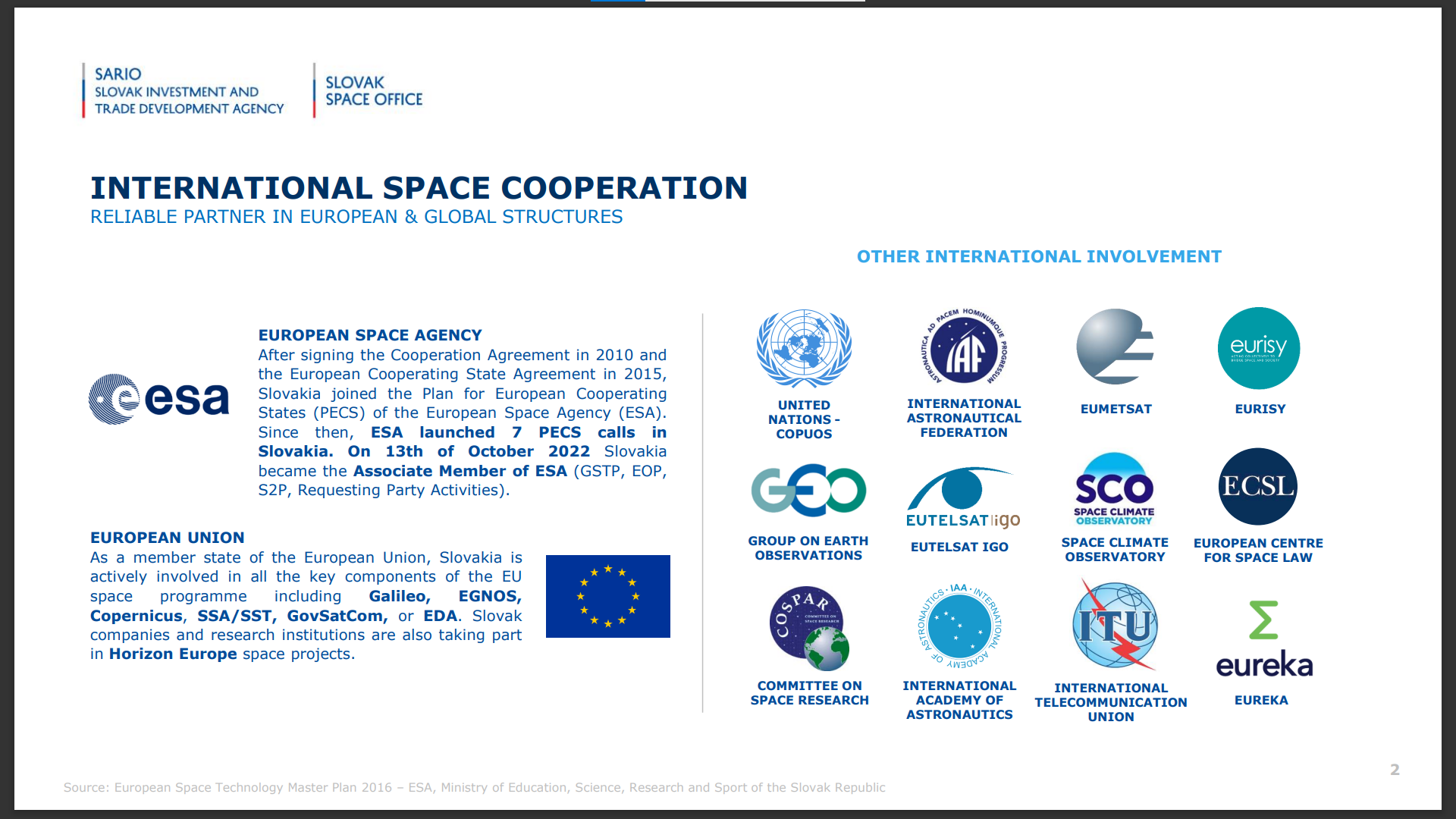 Despite being a relatively small country, Slovakia has a vibrant space ecosystem, including private space tech companies, R&D institutions, and companies operating in spin-in technologies (such as electronics and ITC).