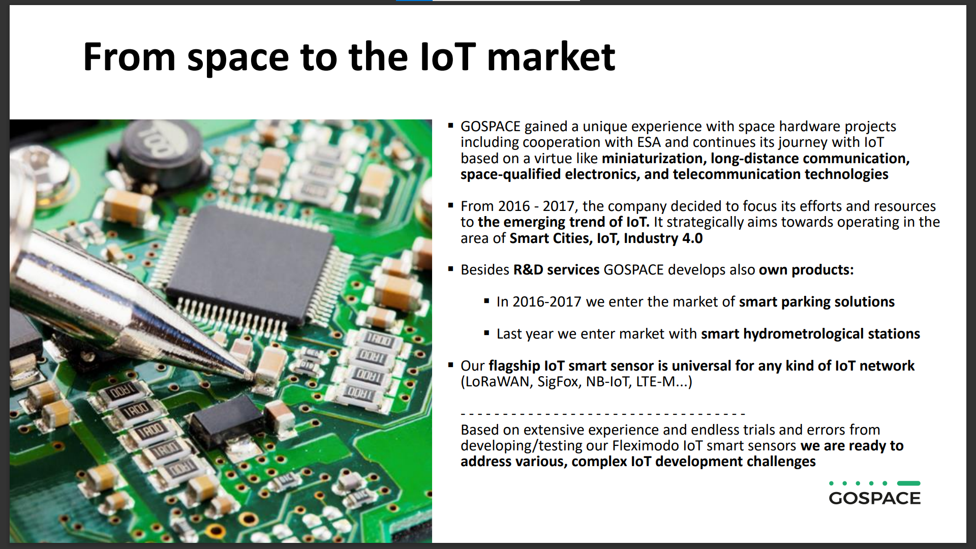 Since then, the company developed a smart parking solution and a smart hydrometeorological station monitoring system, both using data from satellites.