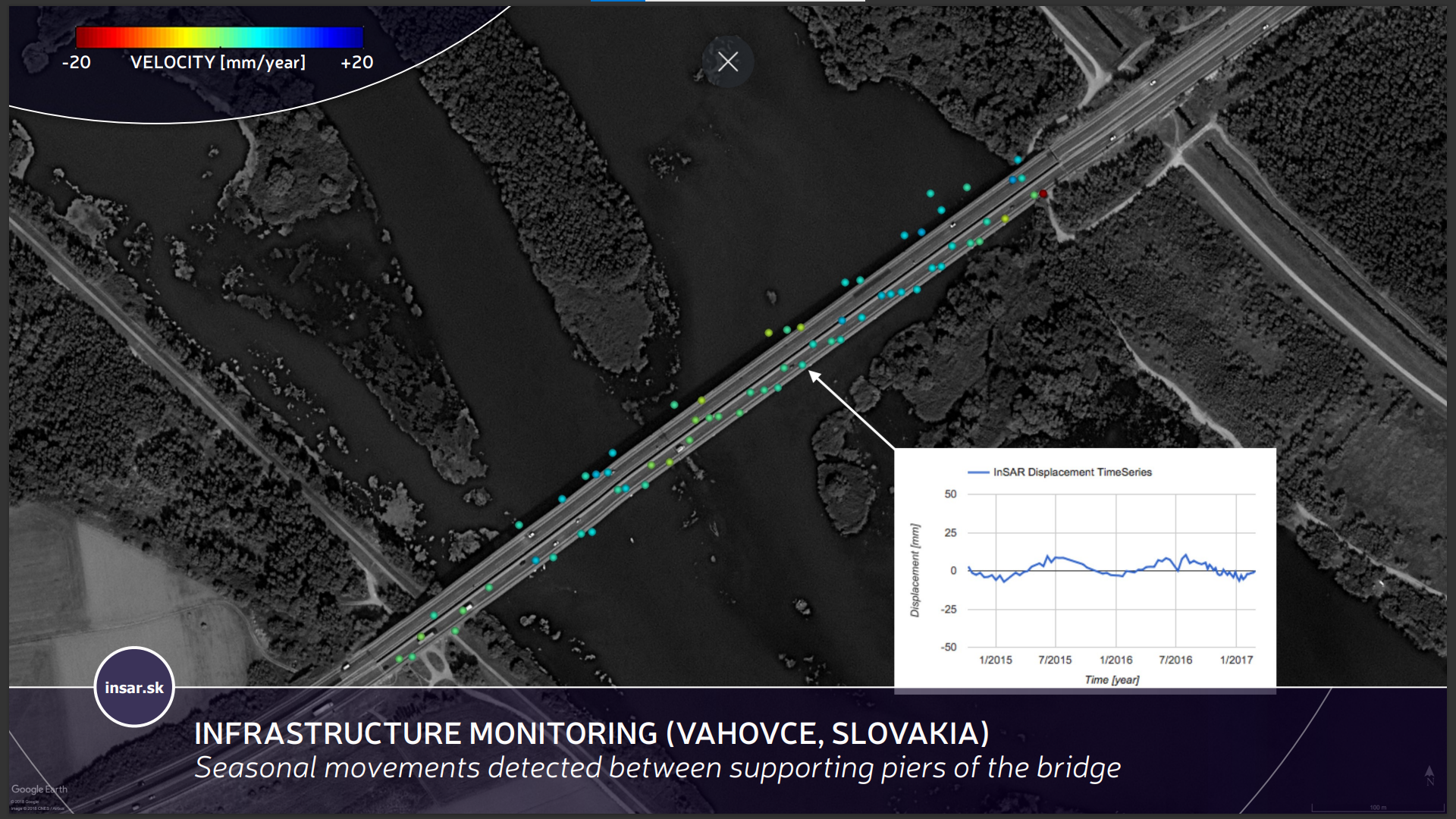 Finally, Mr Matus Bakon presented some of the products developed by INSAR s.r.o. to monitor urban infrastructure with the support of satellites.