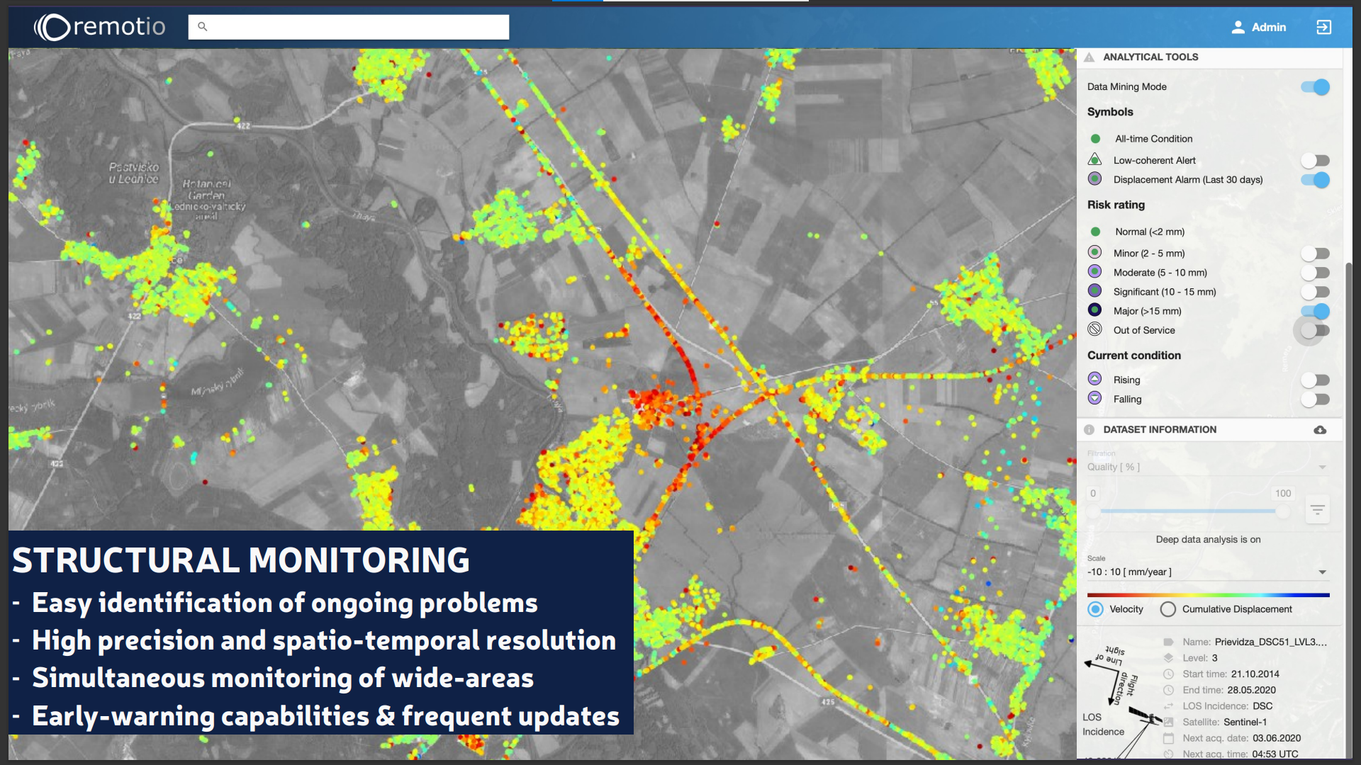 The use of satellite data allows customers to limit ground inspections and to have an historical overview of soil movements over a vast area.