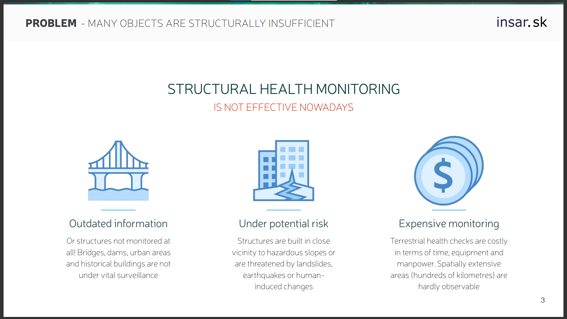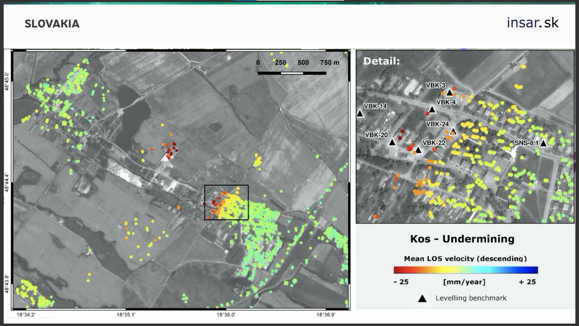 The application relies on satellite INSAR data and provides guidance to urban decision-makers in a number of cities, for example in New Delhi, in India, but also in Slovakia, where the company provides data useful to prevent and understand damage to buildings caused by undermining.