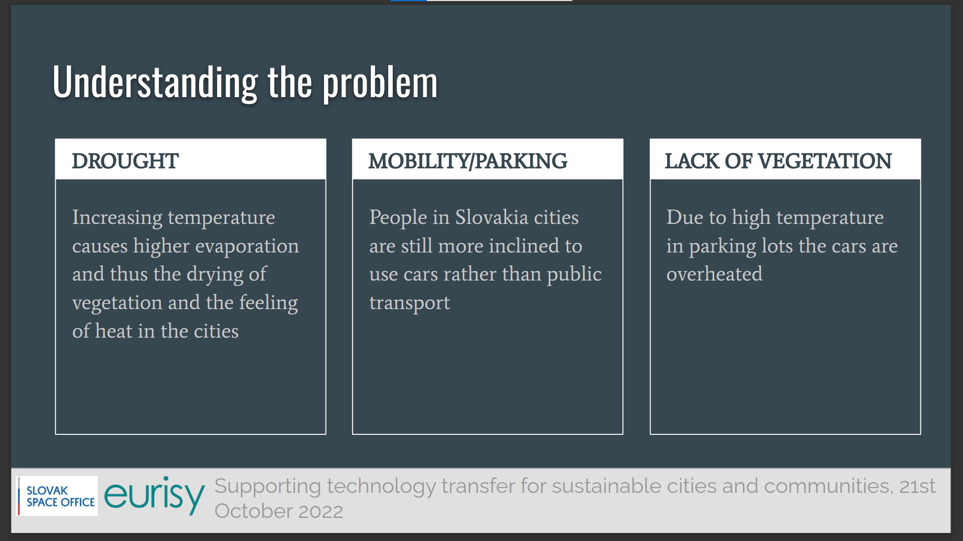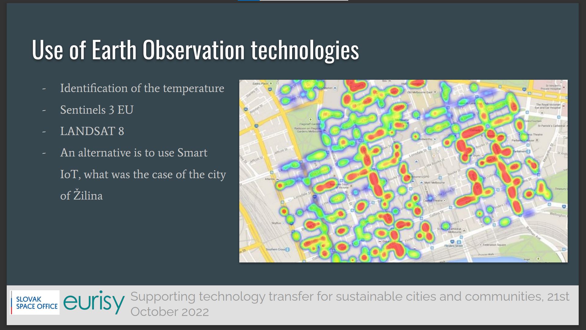 For this 6th webinar of the Eurisy Members’ Corner series, the Slovak Space office selected three examples of use of satellite data to increase quality of life in urban aeras.