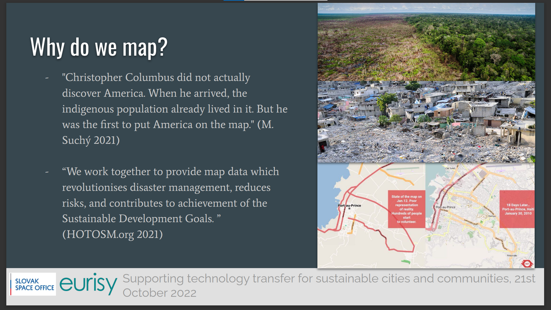 Since 2020, Mr Miloslav Michalko is one of the two mentors of a group of self-organised students who are passionate about the potential of crowd mapping. The group is part of an international community of humanitarian mappers, that got inspired by the role played by satellites to enable mapping and post-disaster intervention in Haiti in 2010.