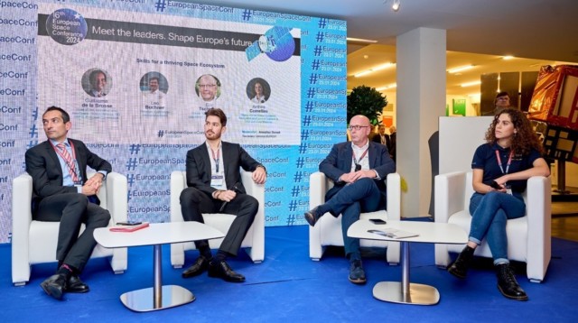 The spotlight was also put on skills development and education, with a panel discussion on Skills for a Thriving Space Ecosystem. The diversity of the panel highlighted the necessity of having a multidisciplinary approach to the space sector to address the gap between the sector’s needs and the skills shortage. Mr Guillaume de La Brosse, Head of Unit of Innovation and New Space – Space Defence at the European Commission DG-DEFIS, Mr Leo Buchner, President of the Association EUROAVIA, Mr Eric Tschirhart, Special Advisor to the Rector at UNIVERSEH ‘European University’, and Ms Anthea E. Comellini, Guidance, Navigation and Control Engineer and ESA Reserve Astronaut discussed how skills are shaping the future of the space sector and vice-versa under the guidance of Ms. Annalisa Donati. As the space ecosystem evolves at a fast and increasing pace, the industry is finding it harder to employ skilled professionals, especially as current curricula are evolving at a paradoxical slow pace. One major takeaway from the session is the need for increased multidisciplinarity and forward thinking in the space ecosystem, which could be achieved through deeper collaboration with industry and academia, and perhaps through jointly defined curricula. It is worth mentioning that the space sector is not lacking in aerospace engineers, it is lacking specific skills outside the traditional programs, and especially software skills and soft skills. In light of these challenges, Mr Guillaume de La Brosse announced two initiatives carried on by DG DEFIS to help bridge this gap: