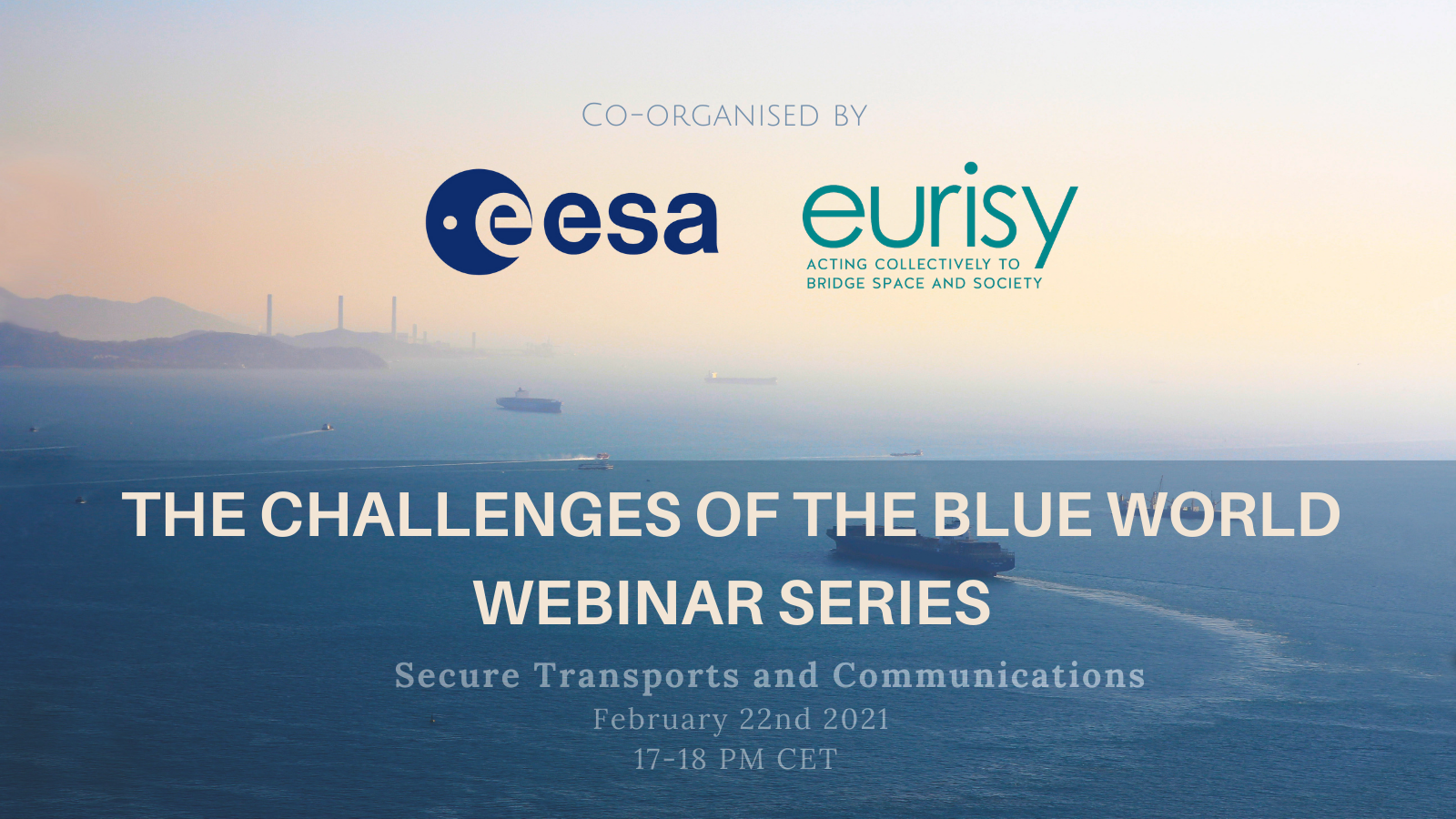 This webinar series, promoted by ESA in collaboration with Eurisy, will discuss the current challenges faced by maritime stakeholders, as well as how satellite-based solutions respond to emerging needs and trends. The webinar will gather around a virtual table local authority, NGOs, research centres, and industrial clusters from space and maritime domains.